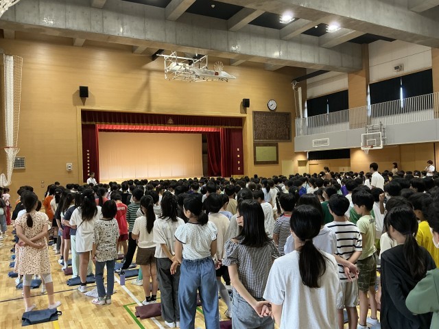 1学期も今日で終了です。静かに立ちましょう=黙って立つ子どもたち。このひとつをとっても大きな成長を感じました。