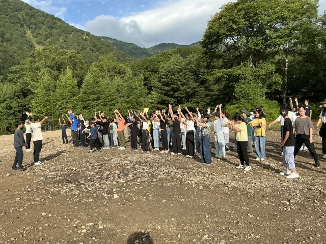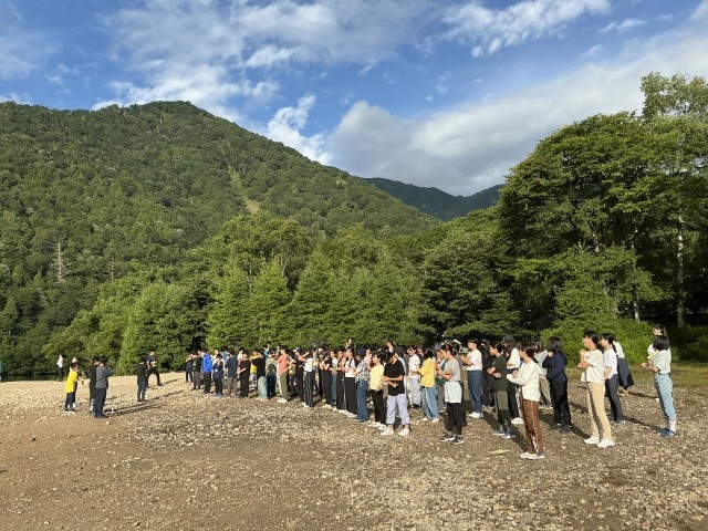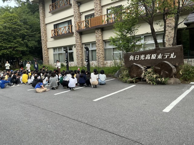 湯ノ湖でラジオ体操をしましたが、湖畔にはすでに先客の学校が3校ありました。