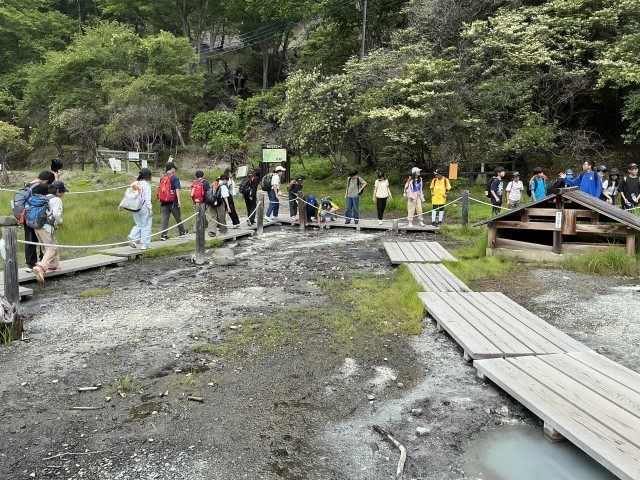 華厳の滝を見学後、湯元源泉を見に行きました。