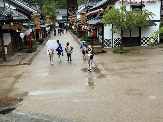 日光江戸村では、到着時雨が降っていましたが、雨は止んで、ちょっとずつ蒸し暑くなってきました。