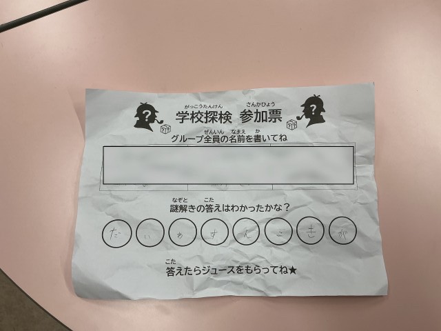 花火大会の後の学校は、さすがに真っ暗です。真っ暗な間で探した文字から、言葉を考えます。なかなか難しい🤨