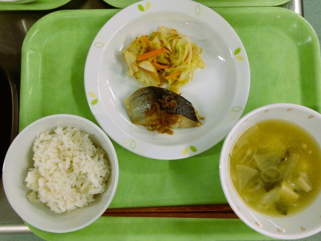 麦ごはん 牛乳 魚の南蛮焼き きゃべつともやしのおかかあえ だいこんのみそ汁
