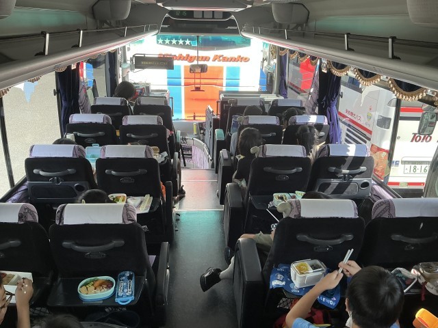 まだ雨は降っていませんが、暑いのでバス車内でお弁当を食べました。