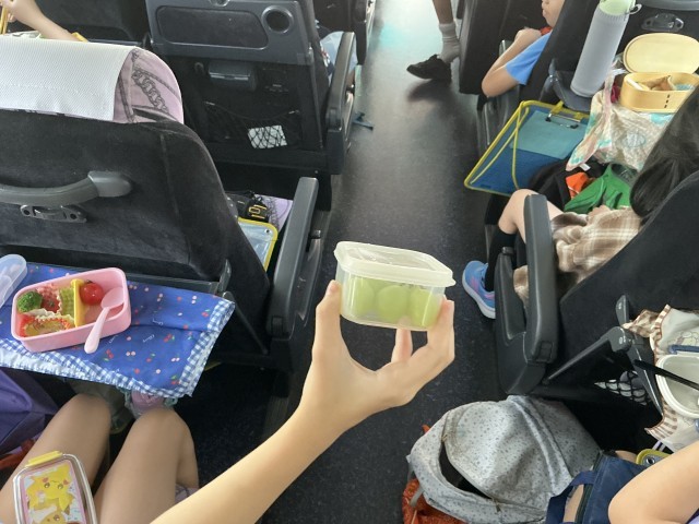 保護者の皆様、お弁当の用意をありがとうございます。みんなおいしそうに食べていました。