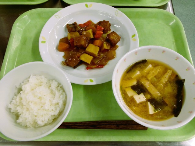 ごはん 牛乳 魚の甘酢あん じゃがいものみそ汁