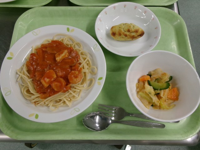 トマトクリームスパゲッティ 牛乳 イタリアンサラダ スィートポテト