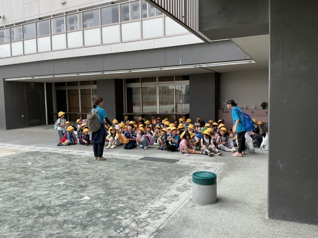 お昼ご飯を食べ、自分たちで出してしまったゴミを拾って、いざ代沢小学校へ。