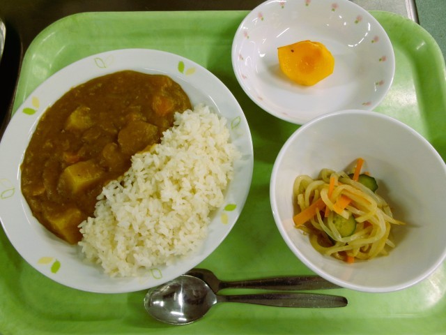 カレーライス 牛乳 和風サラダ くだもの(柿 特別栽培)