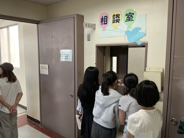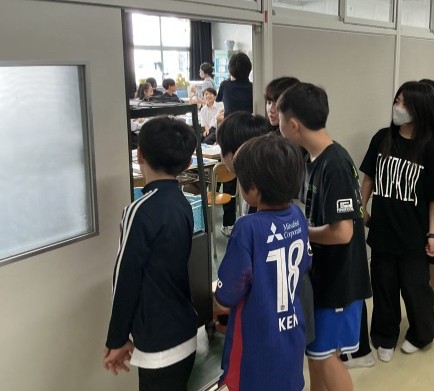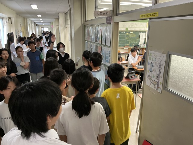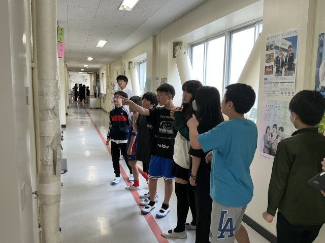 グループごとに分かれて、2年生の生徒が富士中学校を案内してくれました。3年生1年生は授業中でしたが、授業の風景もしっかりと見せていただけました。