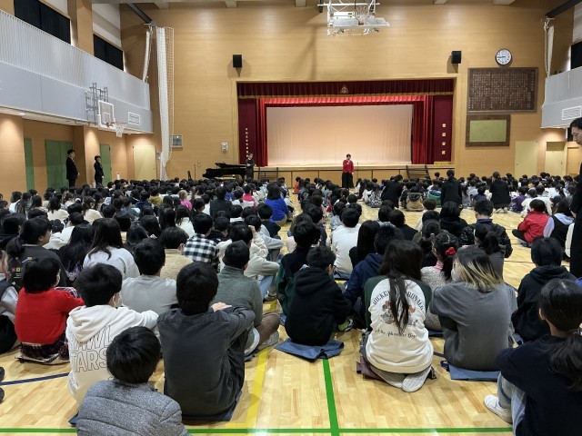 2年生代表児童の言葉にもじっと耳を傾ける子どもたちでした。