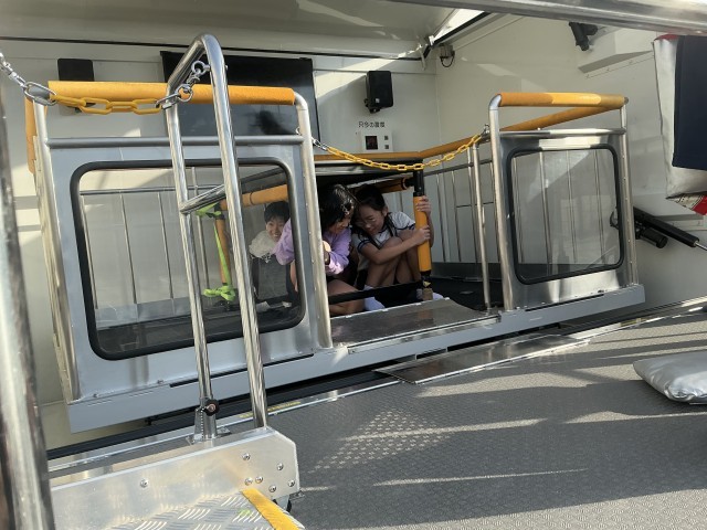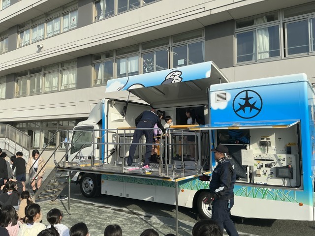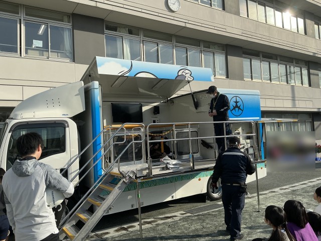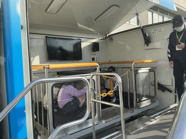 避難訓練後、4年生が起震車体験を行いました。