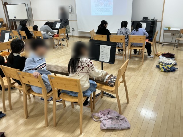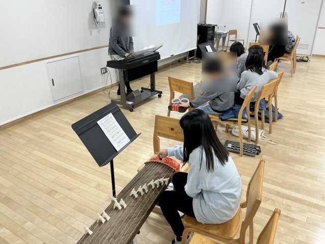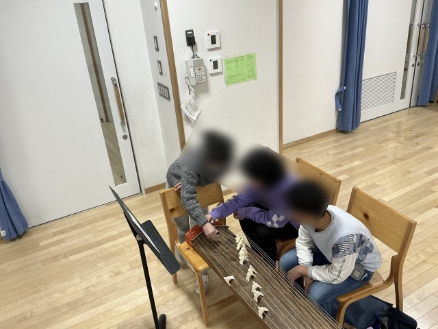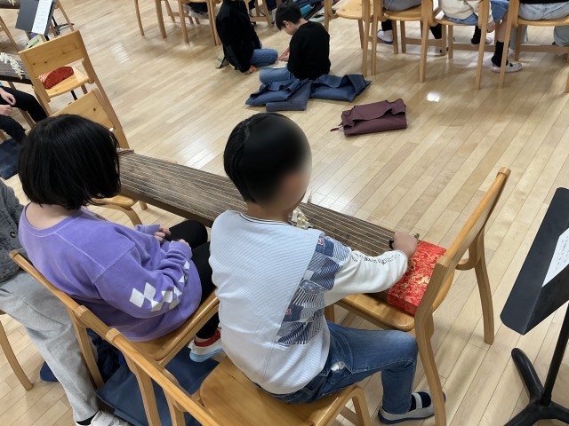 4年生は多目的室でお琴…「さくら」を奏でています。なかなか難しそうですが、さらに難易度の高いところに挑戦してみたり、協力してみたりして、お琴に挑戦しています。