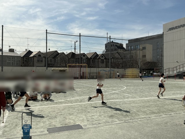 校庭では、どの学年も体育の時間は一生懸命走っています。