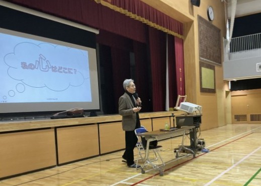 体育館では健康教育学者・日本ウェルネススポーツ大学教授・日本いのちの教育学会理事長の近藤卓先生をお迎えして「子どもの、そして大人の自尊感情を育てる」をテーマにした講演会を開催して、保護者・地域の皆様、教職員が基本的自尊感情の大切さについてお話を伺うだけでなく、素敵な歌まで聴かせていただきました。