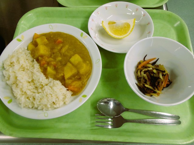 カレーライス 牛乳 ひじきのサラダ くだもの(はるか)