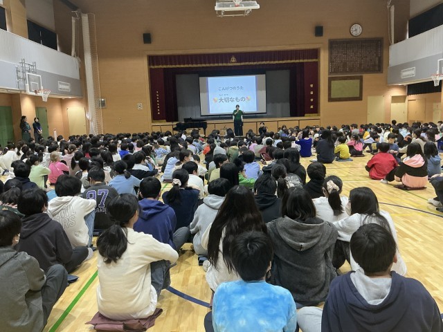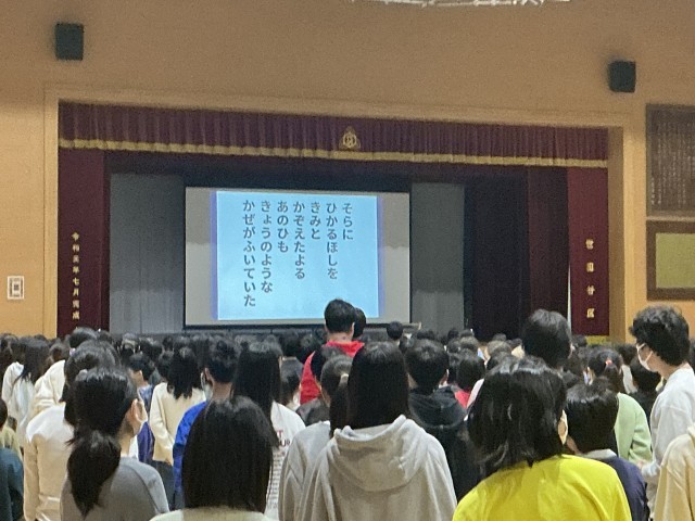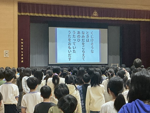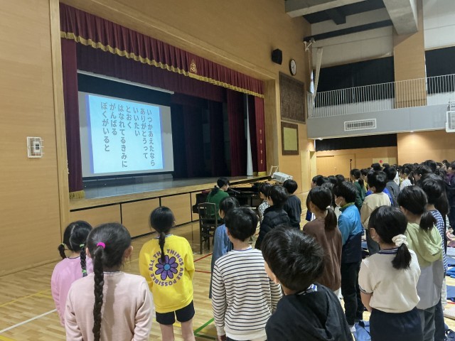 来週の3月3日の「6年生を送る会」で歌う「大切なもの」を全校で歌いました。