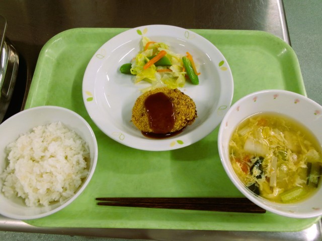 麦ごはん 牛乳 セサミコロッケ キャベツサラダ たまごと白菜のスープ