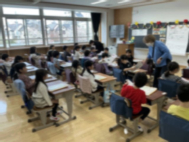 いよいよ今日から授業開始です。登校してきた1年生を6年生がサポートして、教室まで連れて行ったり、教室で朝の準備を手伝ったりする6年生。1年生の顔の高さに合わせて話を聞いてあげている6年生のすがた。とっても素敵です。