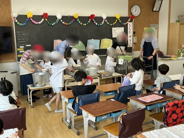 給食のサポートだけでなく、付き添い下校もお手伝いいただいています。付き添い下校は4月7日〜5月8日までお願いしています。本当にありがとうございます。