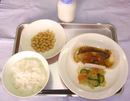 ごはん 牛乳 魚の甘酢あんかけ シャキシャキ野菜 ぶどう豆
