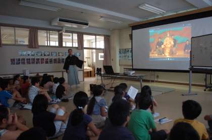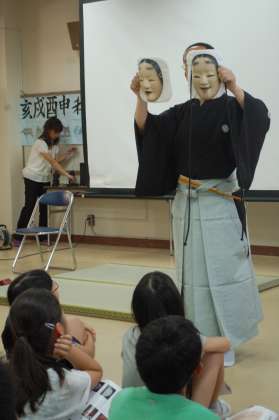 5年生は昨日、能楽教室を体験しました。観世流能楽師の佐久間先生が来てくださり、子どもたちにわかりやすく能について教えてくださいました。佐久間先生はかれこれ7年間、代沢小学校に毎年のように来てくださっています。世田谷では6年生になると古典鑑賞教室で狂言については体験できます。でも、能についてこれほどの体験ができる学校は他にはなかなかないのではないでしょうか。能面の本物を見たり、実際に楽器に触ったり、声を出したりと盛りだくさんの体験は子どもたちの感性にきっと残ったことでしょう。