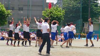 雨で心配された富士中学校の運動会、頑張って開催されました。わが代沢の卒業生も全力の姿を見せていました。クラス対向の綱引き、迫力!燃える若者たちの姿は美しかったです。