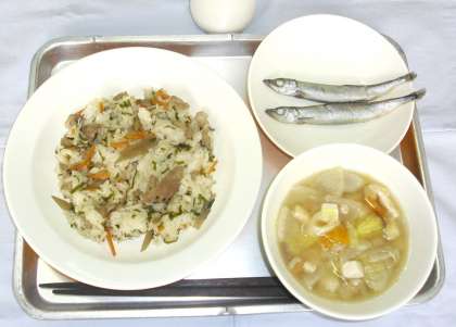 豚肉とごぼうのごはん 牛乳 焼きししゃも さつま汁