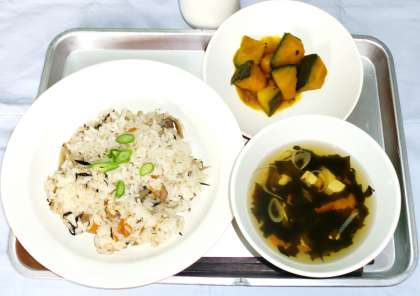 五目ごはん 牛乳 すまし汁 かぼちゃの含め煮