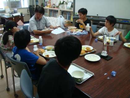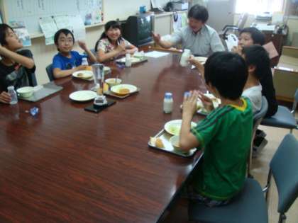 代沢小学校では児童のみんなは、校長先生と『会食』を行っています。6年生から1年生まで順に実施していまして、5〜7名の児童が校長室におじゃまして『会食』を楽しんでいます。