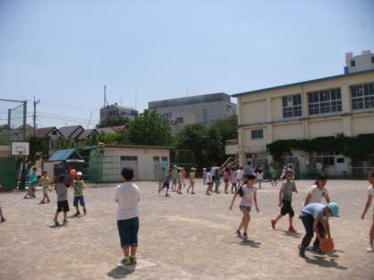 休み時間、今日も代沢小のみんなは外で元気よく遊びました。校庭にふりそそぐ日差しも光輝き、初夏を思わせる日々が続いています。みんなの笑い声もそれに合わせるかのように、かがやいていました。その中で、大縄跳びを練習するクラスが多数ありました。