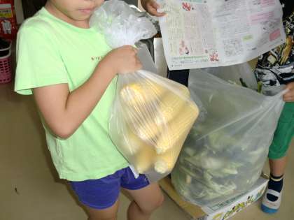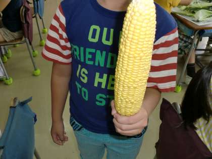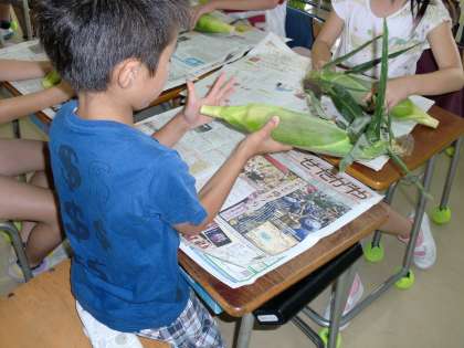 2年生が給食に出るとうもろこしの皮をむきました。しっかり観察もできました。
