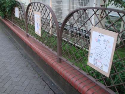 4月に「あいさつ月間」がありました。その後に校内で「あいさつ運動ポスター」を募集し、ラミネーターでパウチした「あいさつポスター」を、学校のまわりに掲示していました。