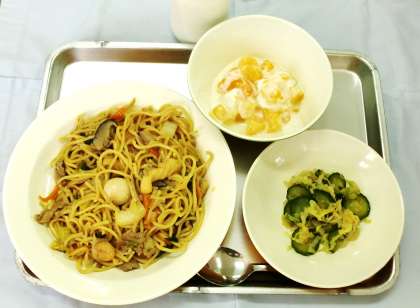 五目焼きそば 牛乳 野菜の中華風味 フルーツヨーグルト