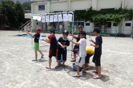 7月15日(水)の3,4時間目、4年生は学年で「空気と水」のまとあてゲームをしました。