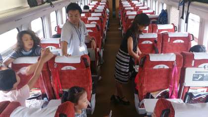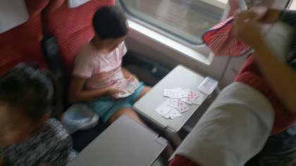 座席に落ち着き、これから約3時間の旅です。思い思いにカードゲームなど始まりました。
