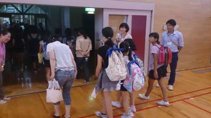 仲良しタイムもおわり、ホームステイでお世話になる保護者のみなさんがお迎えにいらっしゃいました。ここからは、それぞれの時間です。みんな、がんばれ!