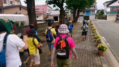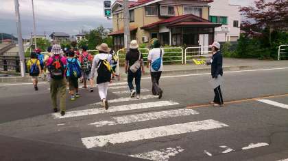 角々や交差点などには、PTAの方々や先生方が安全のために立ってくださっています。たくさんの人に支えられている舟形交流です。