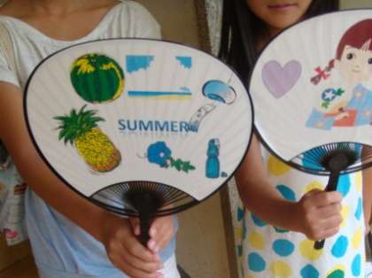 活動内容はコンピューターグラフィックで、うちわの絵を作成し、うちわの骨組みにプリントアウトをしたイラストをはり付けて完成、というものでした。
