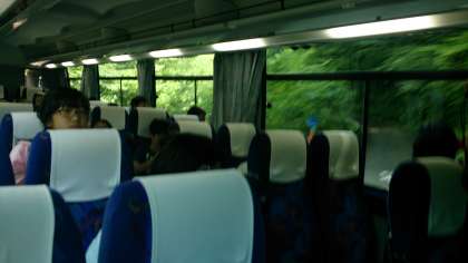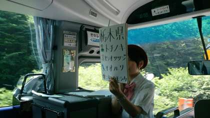 ガイドさんが日光についていろいろ教えてくれています。もうすぐ足尾です。