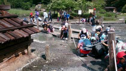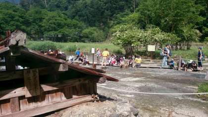 湯本の源泉。硫黄の匂いがたまらない。