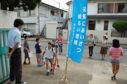今日は代表委員の児童も門に立って、あいさつ運動をしました。
