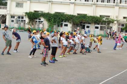 校庭では、代沢恒例の朝ラジオ体操が始まりました。