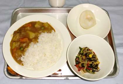 カレーライス 牛乳 大根とひじきのサラダ くだもの