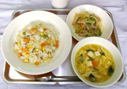 えびチャーハン 牛乳 春雨サラダ 中華風コーンスープ