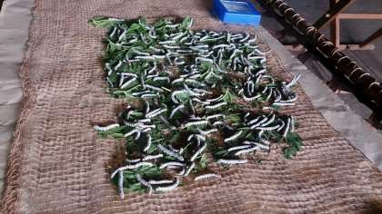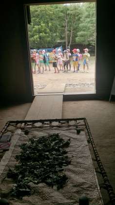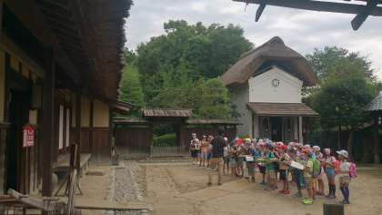 昔の世田谷の風景がここにあります。説明を真剣に聞いてます。蚕が飼われていました。