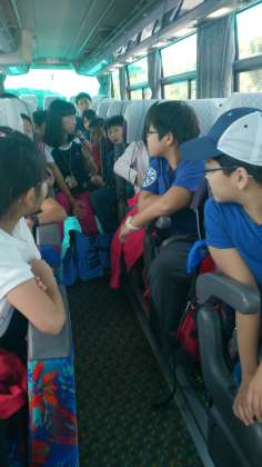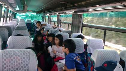 バスレクで盛り上がっています。バスの半分くらいしか乗っていないけど、エネルギー全開。