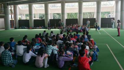 なかのビレッジに着きました。山崎小の5年生とも久し振りの再会です。
