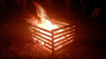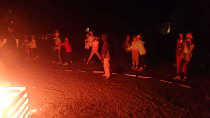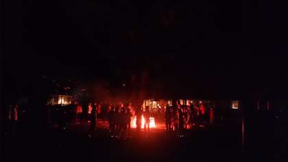 火を囲んで、みんな盛り上がっています。ファイア係がんばっています。