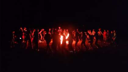 ジャンケンジエンガ、タタロチカ、マイムマイム。みんな全力で楽しんでます。そして、翼をくださいの大合唱。思い出に残るキャンプファイアでした。