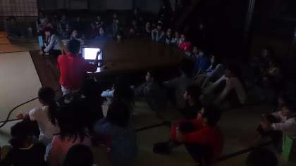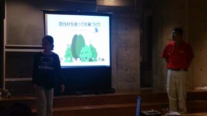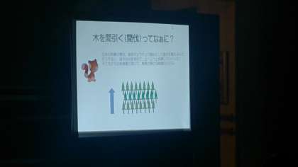 ナイトハイクができないので、間伐材を使った箸づくりをします。最初に間伐材についてレクチャーを受けました。